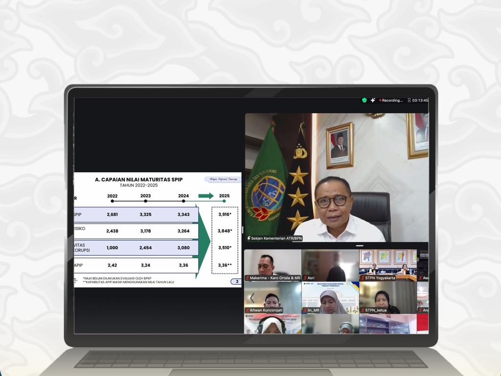 Adapun hasil penilaian mandiri yang dilakukan oleh Inspektorat Jenderal Kementerian ATR/BPN tahun 2025, meliputi empat indikator, yakni Maturitas SPIP 3,916; Manajemen Risiko Indeks 3,848; Indeks Efektivitas Pengendalian Korupsi 3,080; dan Kapabilitas APIP 3,36. Hasil ini selanjutnya akan dinilai oleh pihak eksternal, yakni Badan Pengawasan Keuangan dan Pembangunan (BPKP).