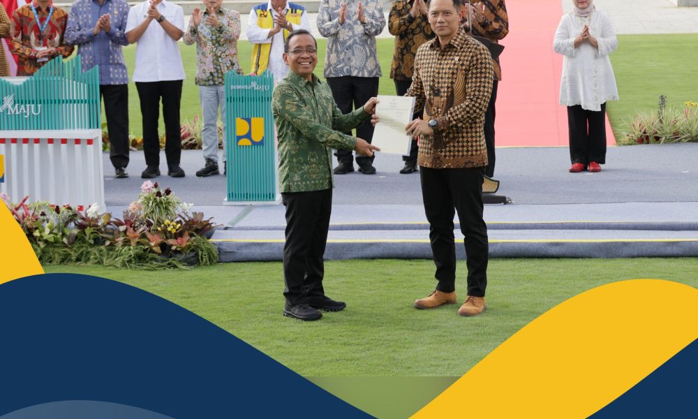 Nusantara – Menteri Agraria dan Tata Ruang/Kepala Badan Pertanahan Nasional (ATR/BPN), Agus Harimurti Yudhoyono (AHY) mendampingi Presiden Joko Widodo dalam Peresmian Istana Negara di Ibu Kota Nusantara (IKN), Provinsi Kalimantan Timur, Jumat (11/10/2024). Dalam kesempatan ini, Menteri AHY menyerahkan Sertipikat Tanah Elektronik berupa Hak Pakai untuk Istana Negara dan Istana Garuda kepada Menteri Sekretaris Negara, Pratikno di hadapan Presiden Joko Widodo.