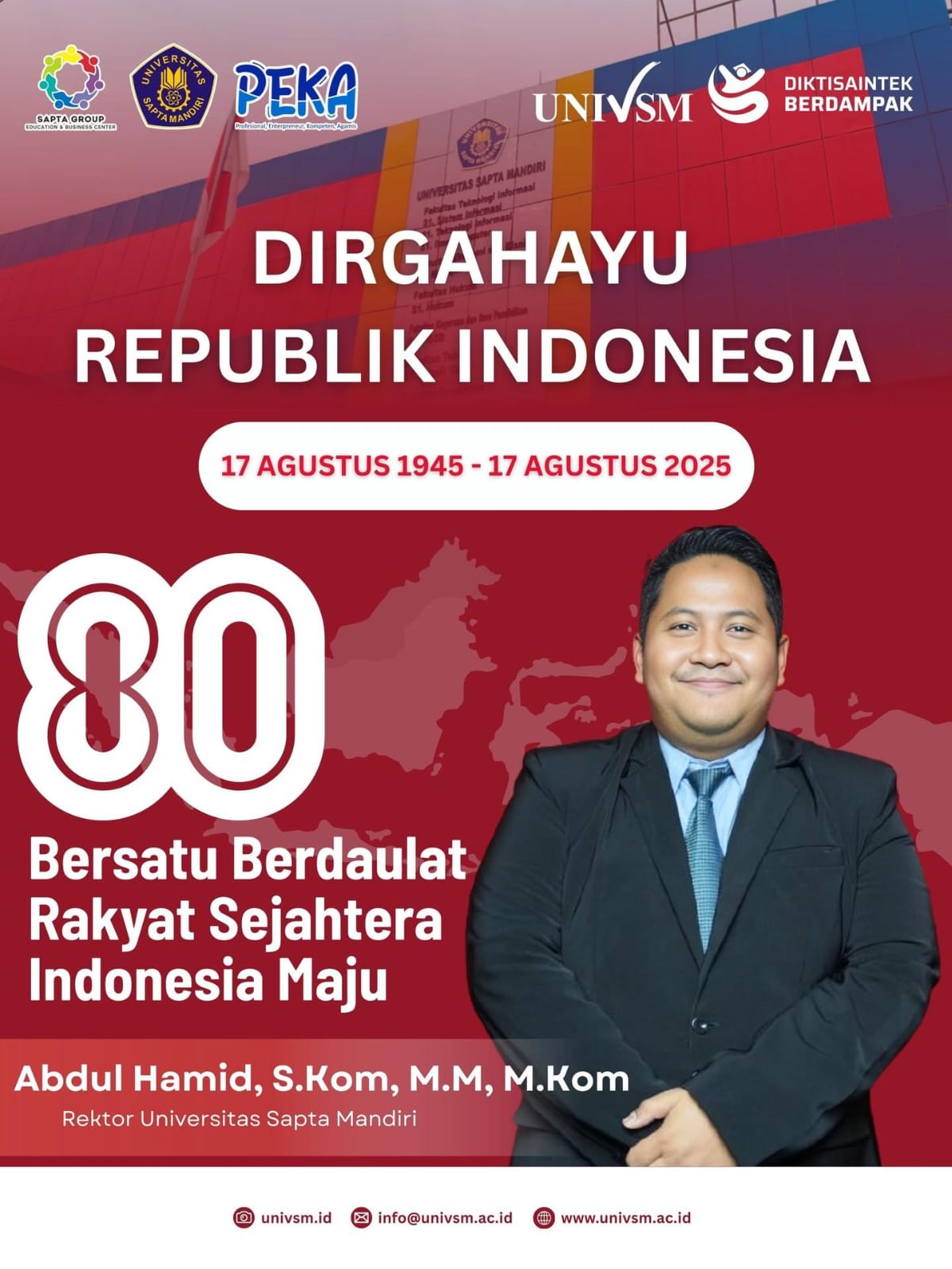 Rektor Universitas Sapta Mandiri, Abdul Hamid, S.Kom., M.M., M.Kom., menyampaikan pesan penuh makna yang menggugah semangat kebangsaan civitas akademika.