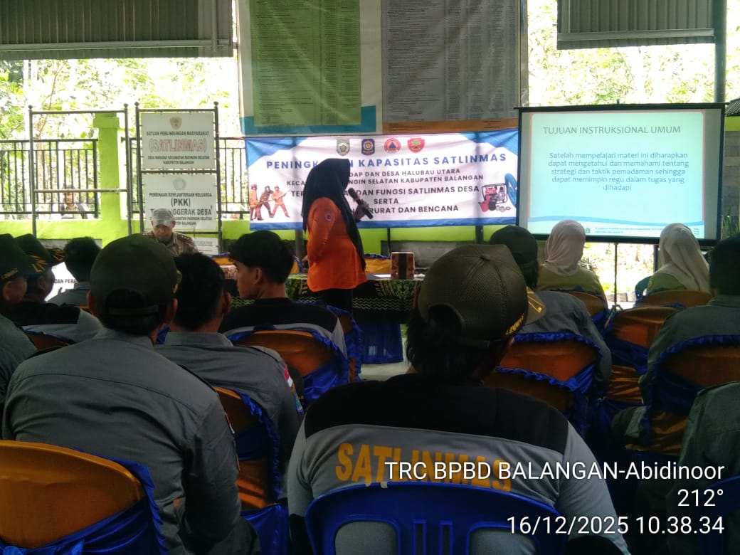 Habarbalangan – Upaya memperkuat kesiapsiagaan masyarakat terhadap potensi bencana terus dilakukan BPBD Kabupaten Balangan. Salah satunya melalui kegiatan Sosialisasi Peningkatan Kapasitas Satuan Perlindungan Masyarakat (Satlinmas) yang digelar di Desa Maradap dan Desa Halubau Utara, Selasa (16/12/2025).