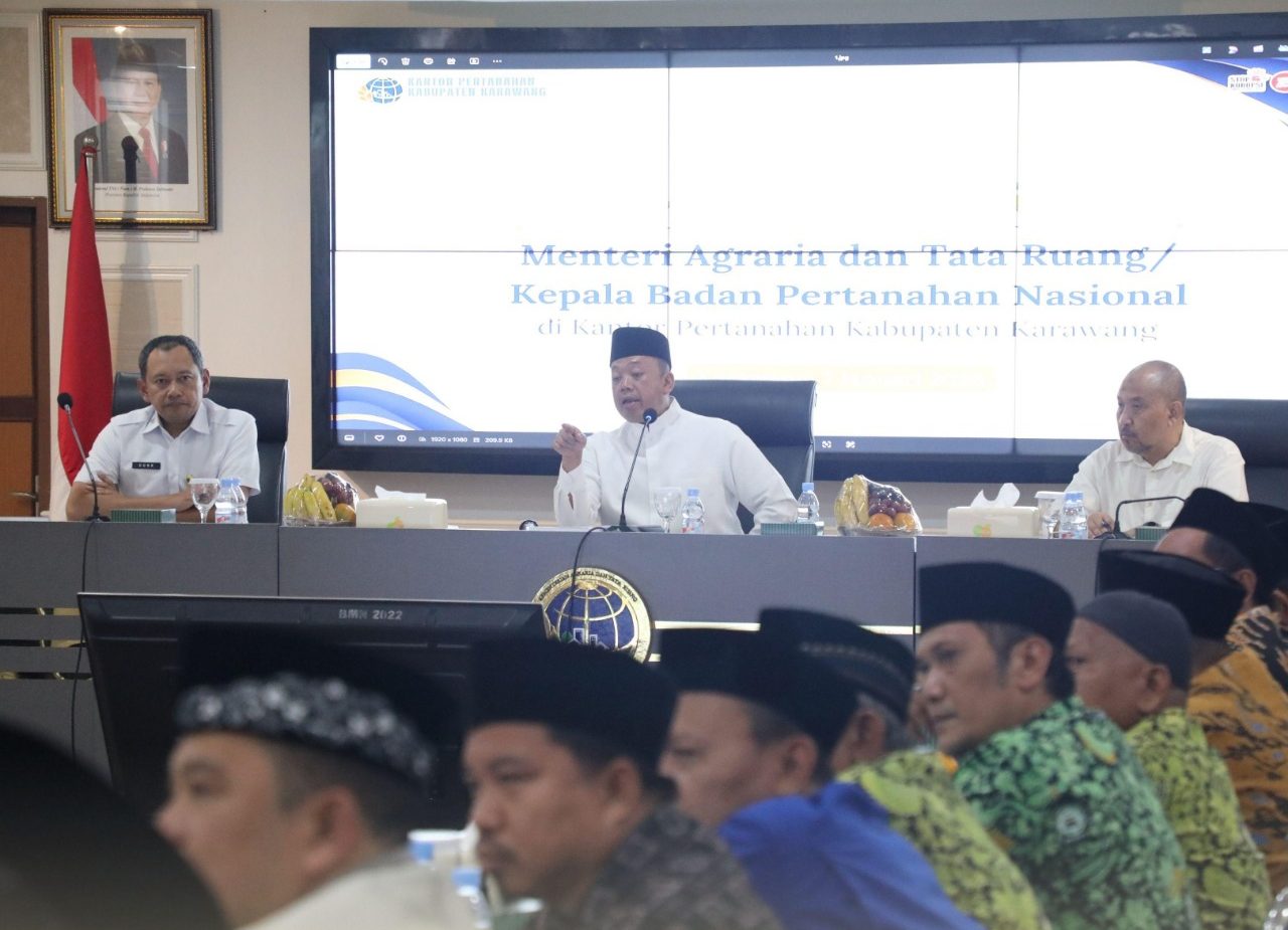 Karawang, habarbalangan.com – Upaya penyelesaian sertipikasi tanah wakaf dan rumah ibadah terus diperkuat melalui peningkatan peran strategis tokoh keagamaan. Menteri Agraria dan Tata Ruang/Kepala Badan Pertanahan Nasional (ATR/BPN) Nusron Wahid menegaskan pentingnya membangun kesadaran serta mendorong partisipasi aktif para tokoh agama guna mempercepat sertipikasi aset keagamaan.