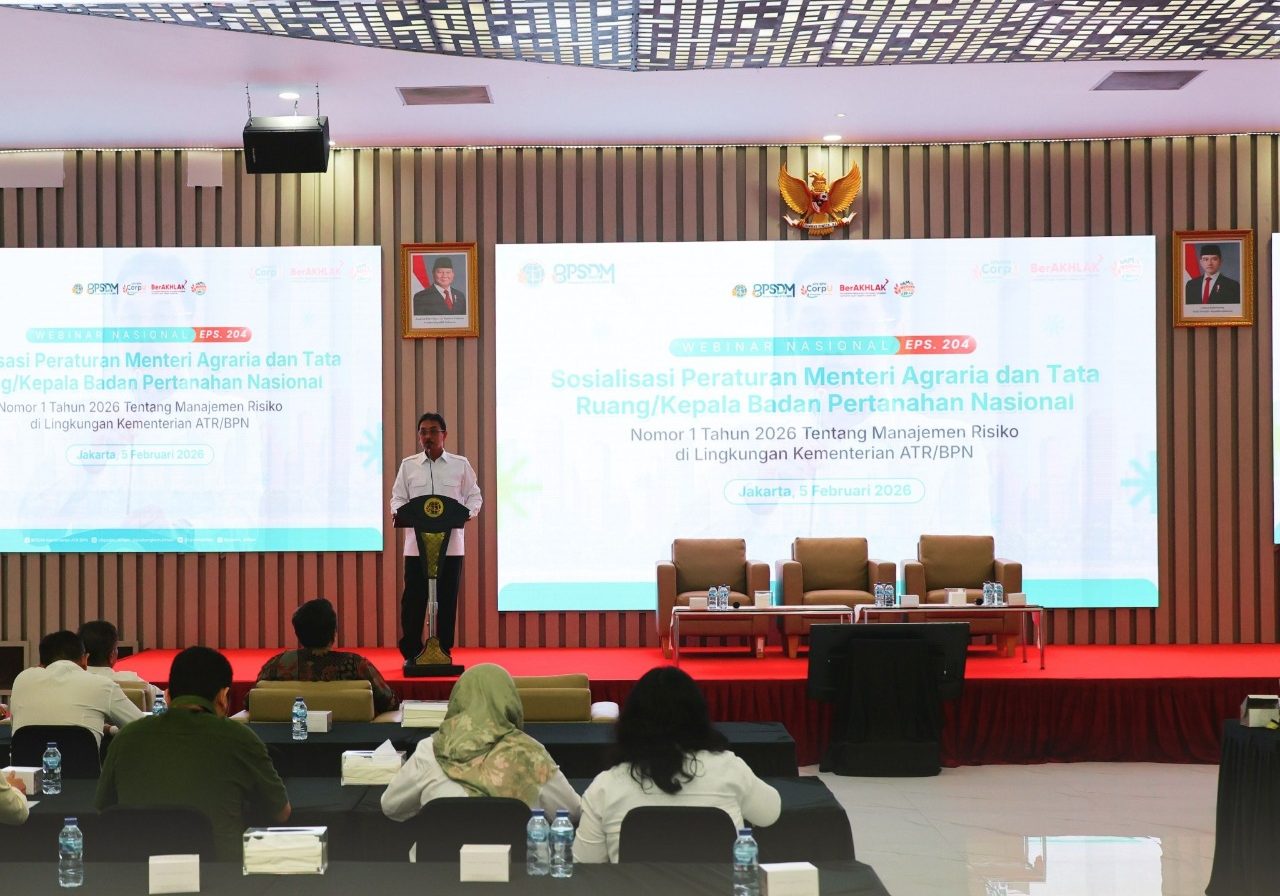 JAKARTA, Habarbalangan.com – Kementerian Agraria dan Tata Ruang/Badan Pertanahan Nasional (ATR/BPN) memperkuat penerapan manajemen risiko melalui terbitnya Peraturan Menteri ATR/Kepala BPN Nomor 1 Tahun 2026 tentang Manajemen Risiko. Kebijakan ini menjadi fondasi tata kelola organisasi yang terintegrasi, sistematis, dan berkelanjutan, serta disosialisasikan melalui webinar di Aula Prona, Jakarta, Kamis (05/02/2026).