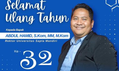 Balangan, Universitas Sapta Mandiri turut memberikan ucapan selamat ulang tahun kepada Rektor, Bapak Abdul Hamid, S.Kom, MM, M.Kom, yang genap berusia 32 tahun, pada juni 2025...