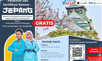 Balangan, 17 Juli 2025 – Universitas Sapta Mandiri (UnivSM) Balangan, Kalimantan Selatan, kembali menghadirkan program inovatif dengan membuka pelatihan kursus bahasa Jepang gratis bagi warga Kabupaten...